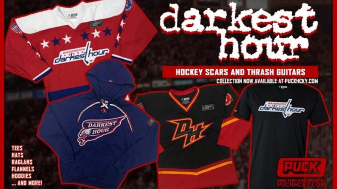 Darkest Hour guitarist Mike Schleibaum says: “As lifelong hockey fans, we couldn’t be more excited to share this PUCK HCKY collaboration with the world. The attention to detail and quality of each item is something that we are very proud of. We have chosen to celebrate some of our favorite NHL teams including our personal home town favorites, the Washington Capitals. If you’re a hockey lover who lives a life dedicated to metal riffing, this is for you. As a kid (before I discovered guitar), I spent every hour I could hanging around ice rinks. Iï¸ spent so much time in ice rinks that they became a place where Iï¸ would discover all sorts of new music, especially metal. These memories serve as a perfect catalyst for our collaboration with the Washington Capitals and now PUCK HCKY! Hockey is in our blood, it’s in the bands DNA, how we discovered our sound in a lot of ways. What better way to celebrate that idea then some killer Darkest Hour-themed hockey apparel!? Get these high quality limited items while you can and thanks again to the good people at PUCK HCKYwho we could not have done this without!”