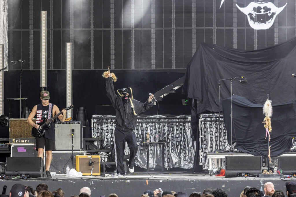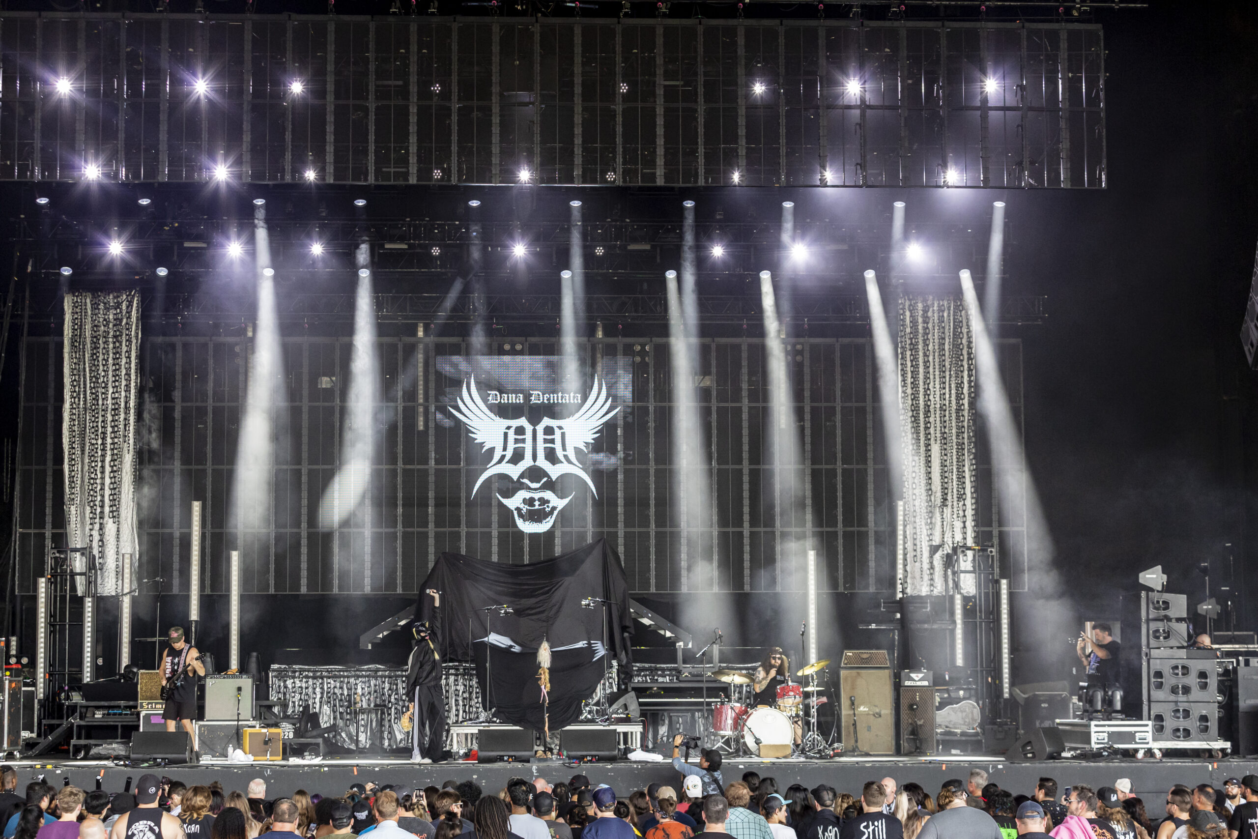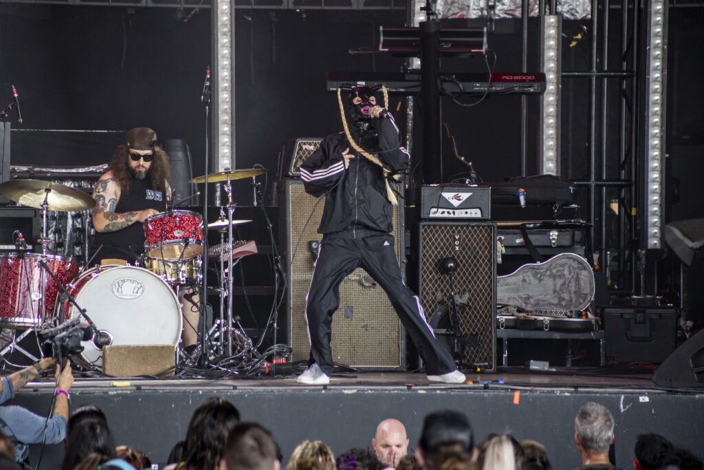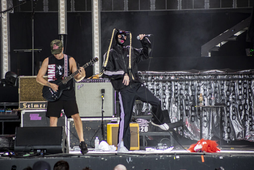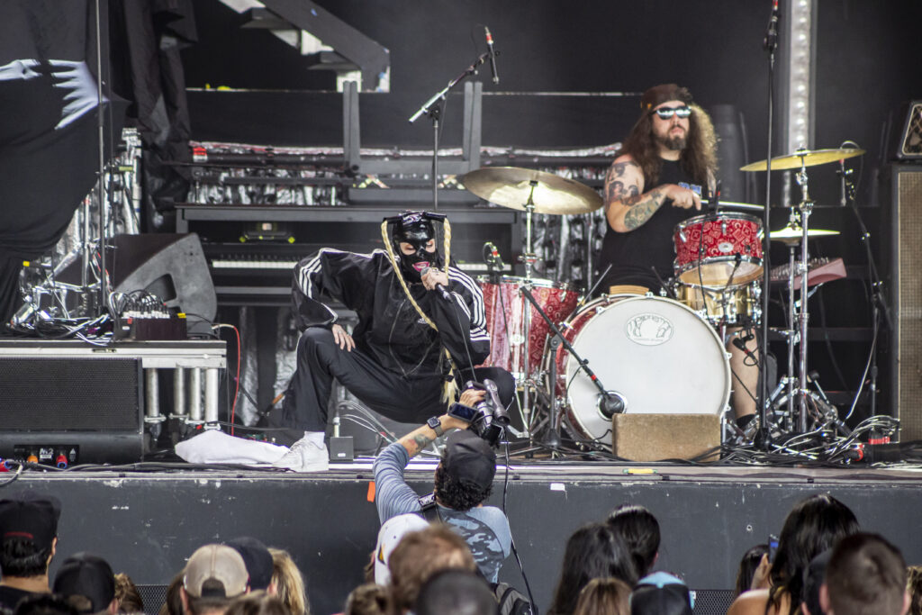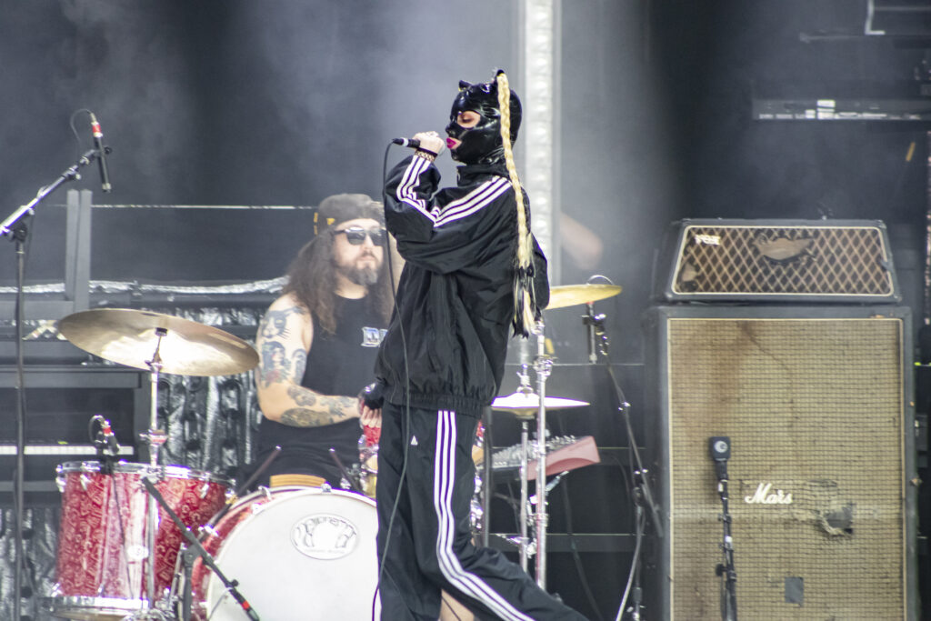 Tumbling through a thick rush of black clothing adorned with proud “Still A Freak” proclamations, Dos Equis Pavilion was overrun by the impenetrable mass that is the Korn fanbase. Definitely a nice nostalgic feeling. Along with KORN and Evanescence was Palaye Royale and Dana Dentata.