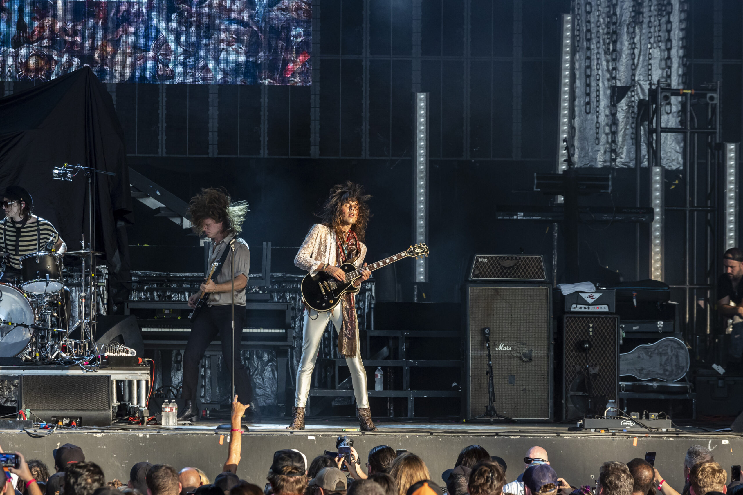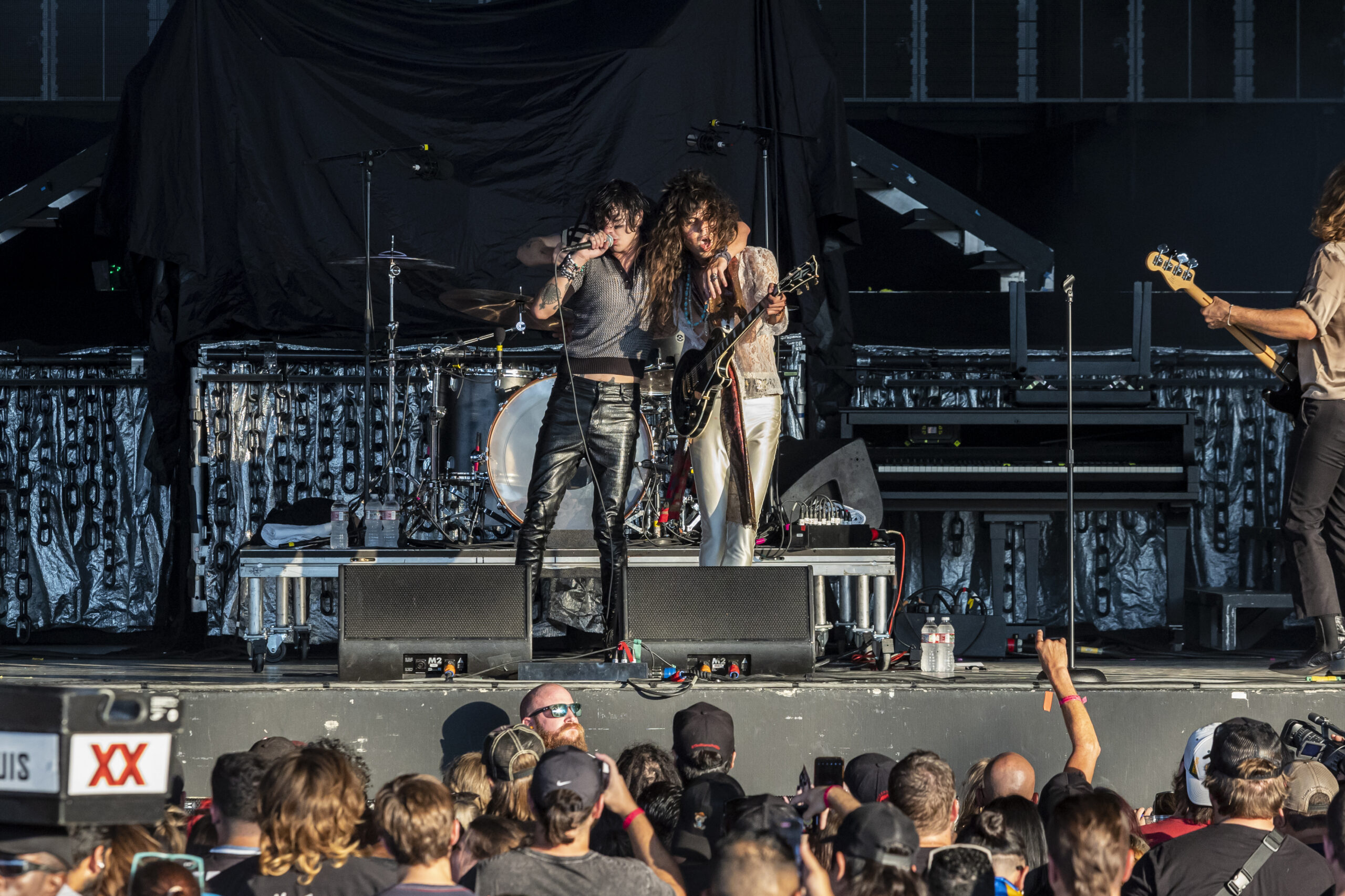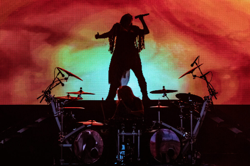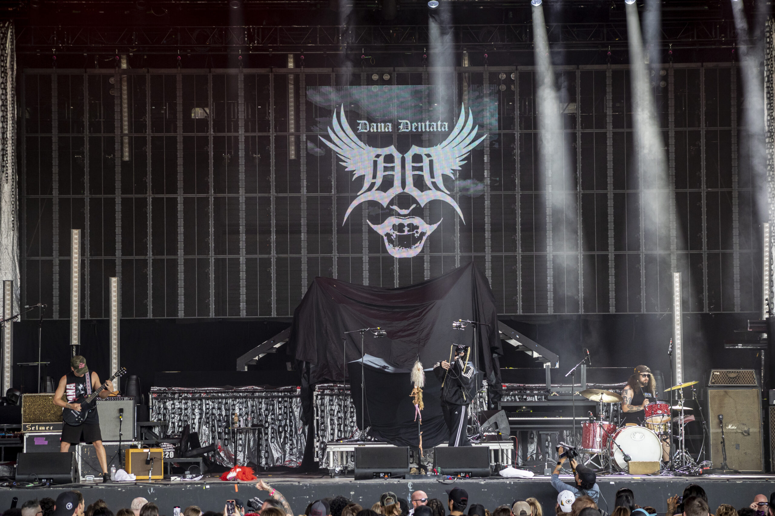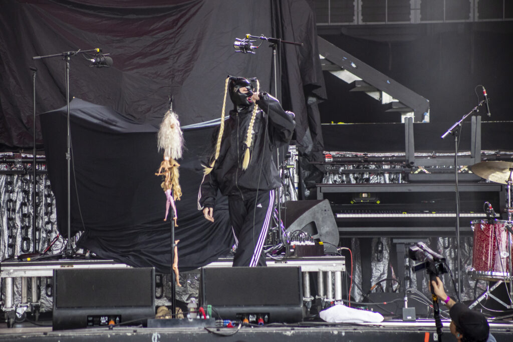 Tumbling through a thick rush of black clothing adorned with proud “Still A Freak” proclamations, Dos Equis Pavilion was overrun by the impenetrable mass that is the Korn fanbase. Definitely a nice nostalgic feeling. Along with KORN and Evanescence was Palaye Royale and Dana Dentata.