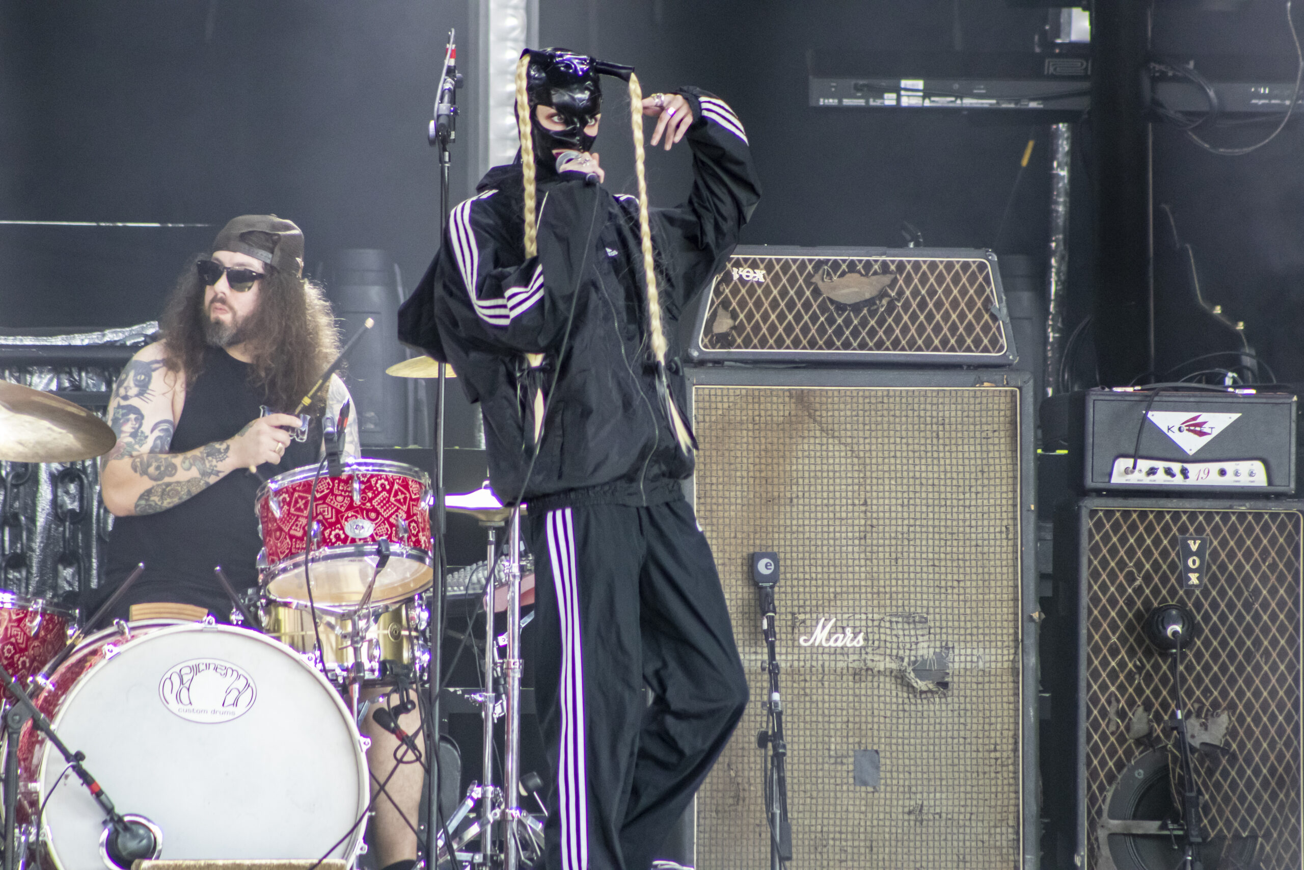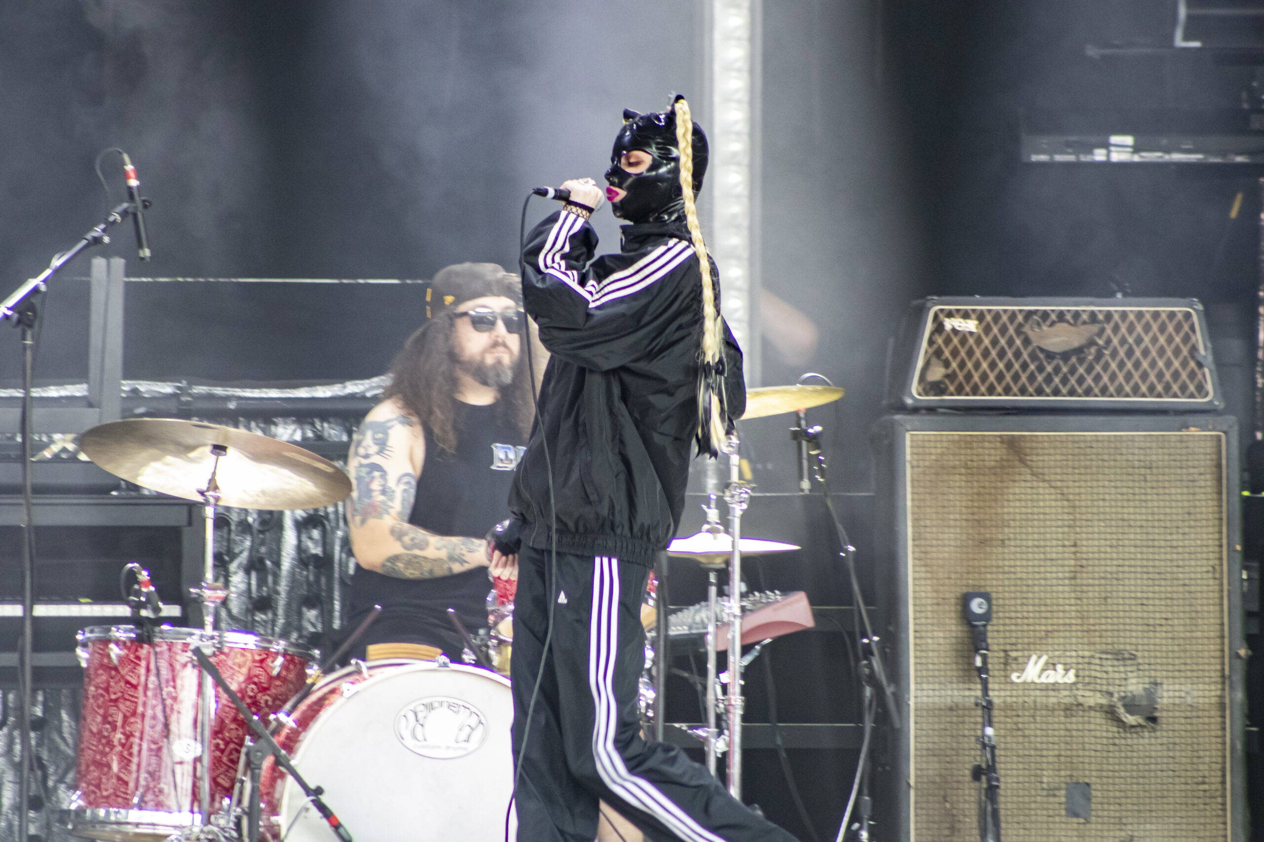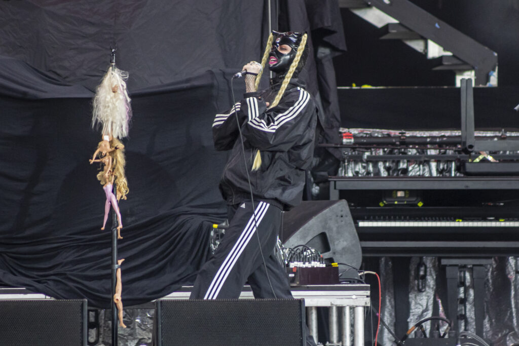 Up first was someone I was unfamiliar with, Dana Dentata. I don’t even know where to start to try and describe her and her style. Mix of the “Nu-Metal” along with the grungy hip hop. It is a wild ride from top to bottom. Daunting a leather bondage mask and an A.D.I.D.A.S. track suit. it was a hell of a wild time. Look her up. See this madness for yourself.