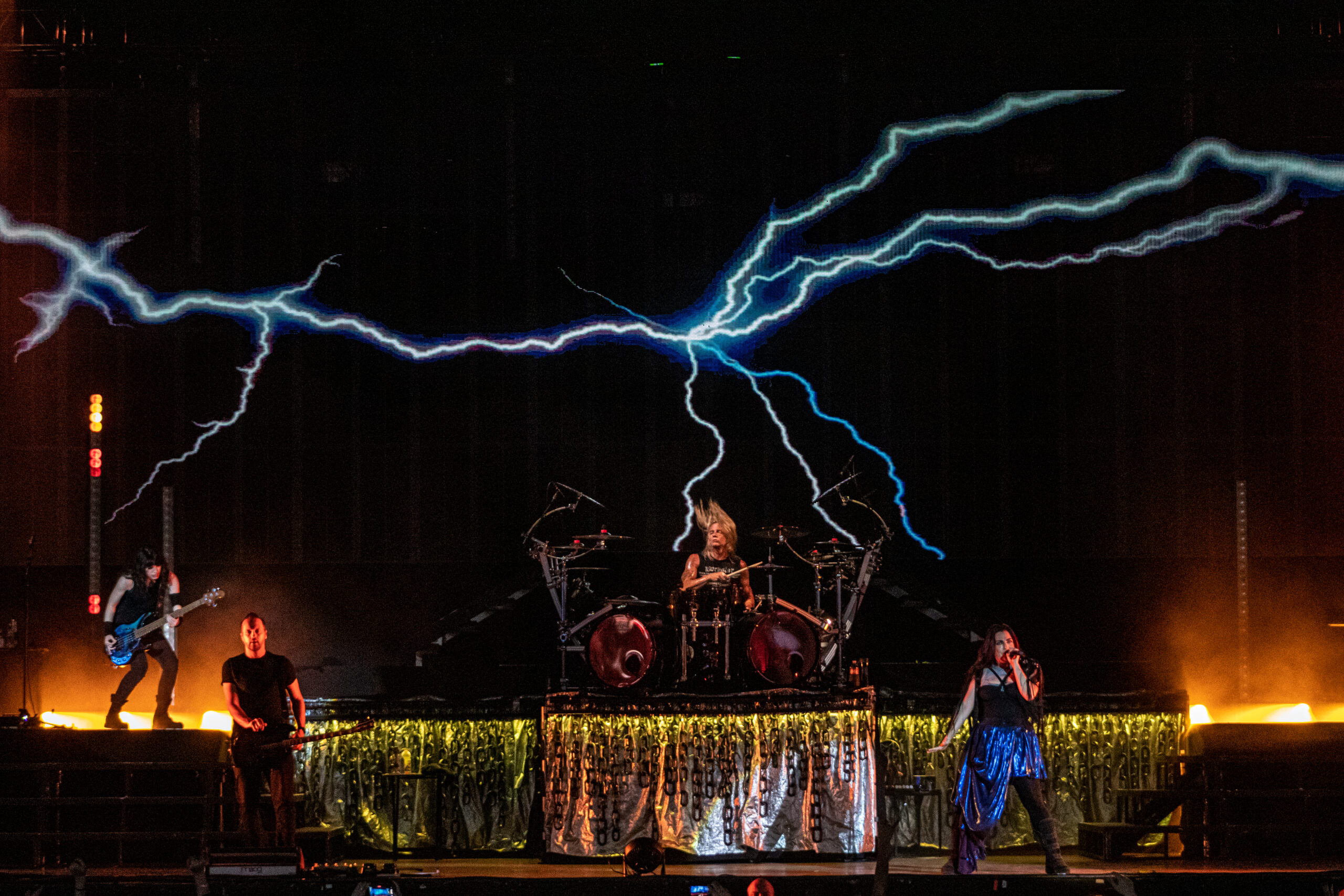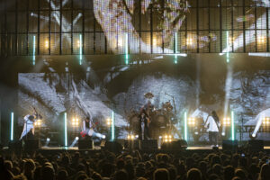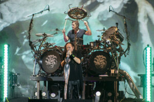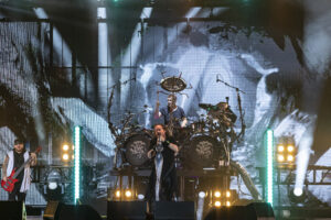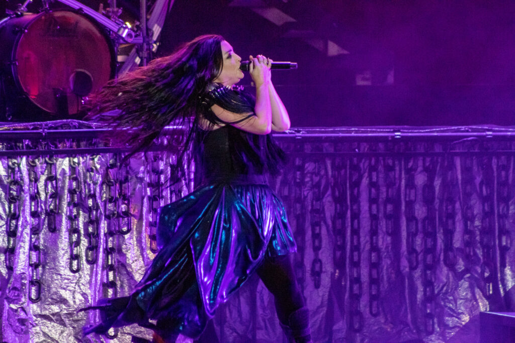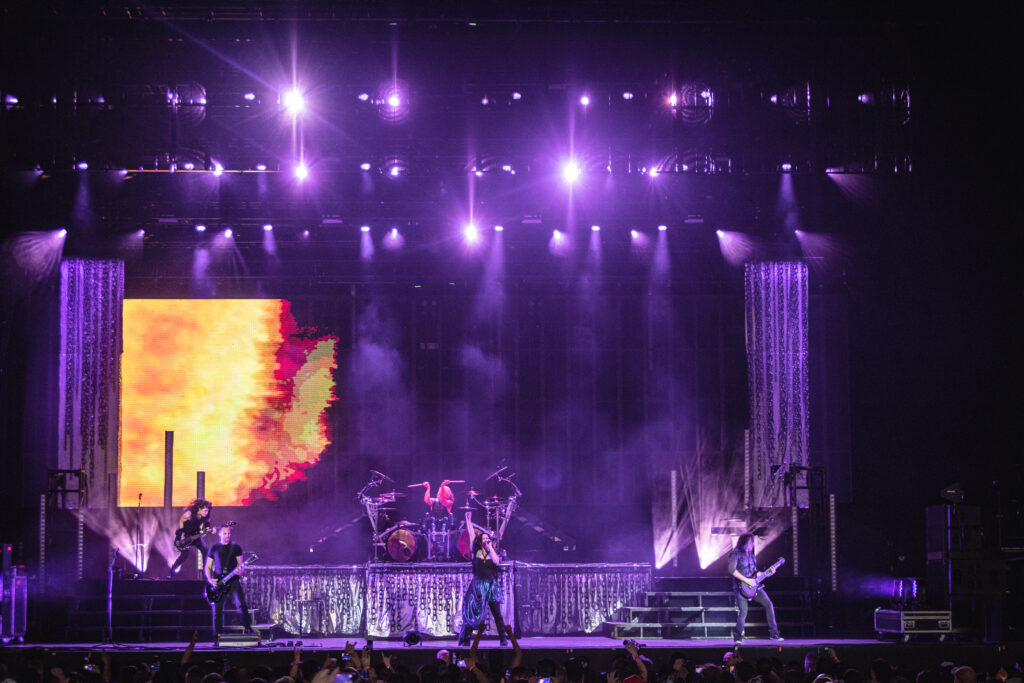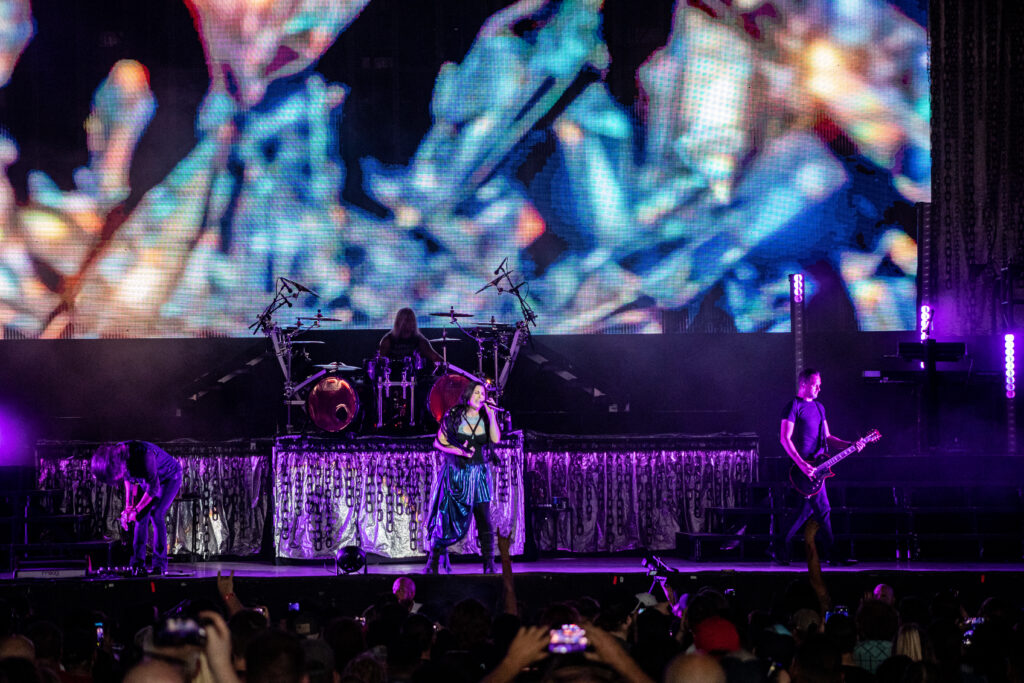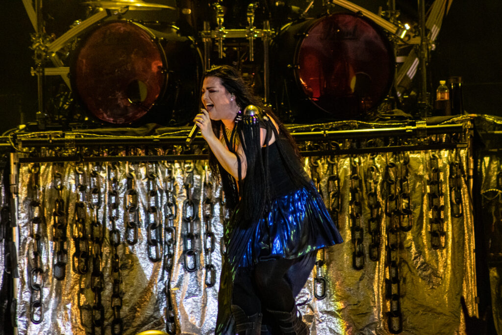 Next band to take the stage needs no introduction. Fronted by one of the most beautiful singing voices in rock in Amy Lee, is Evanescence. As the lights fade, Drummer Will Hunt walks out on stage and starts hitting a beat as a count down happens and Amy Lee appears up above his. A silhouette mainly as they start their set with “Broken Pieces Shine“. Followed by “Made of Stone” and “Take Cover“. Her voice hasn’t changed in the years of her doing this. Still as flawless as ever. Towards the end of their set the piano comes out and she does the classic “My Immortal” to a sea of phone flashlights lighting up the whole pavilion. Ending with “Blind Belief“, Evanescence still goes strong.