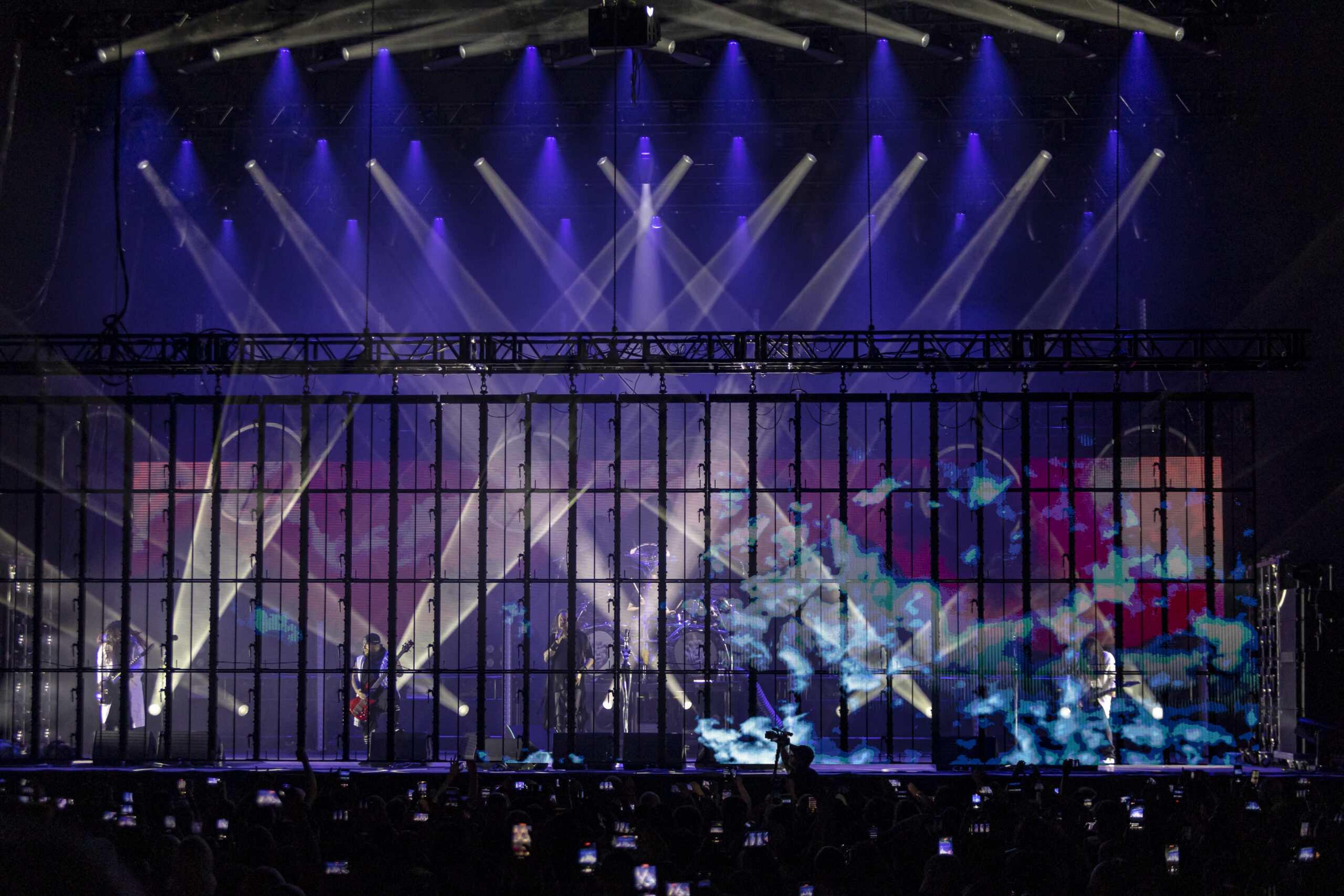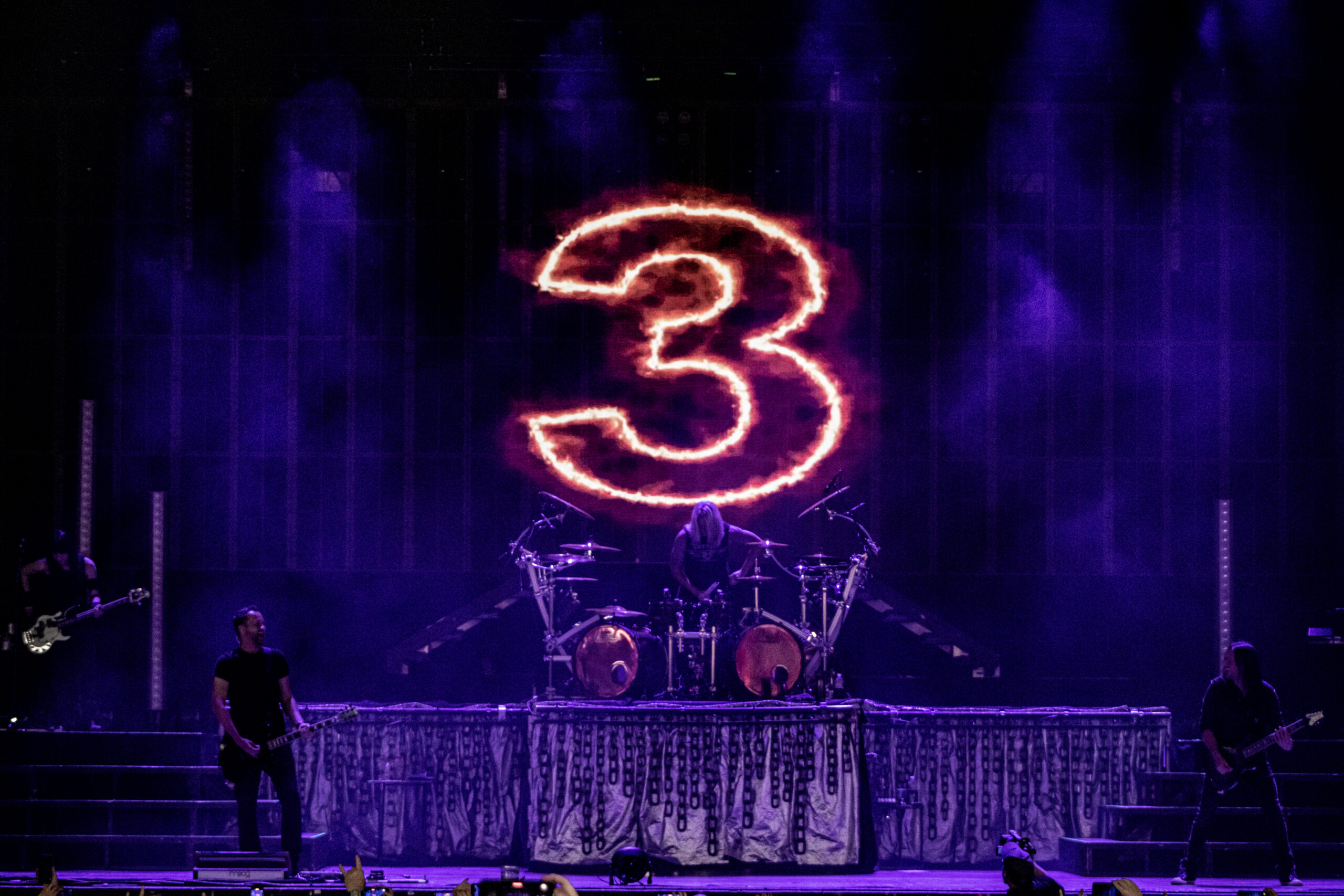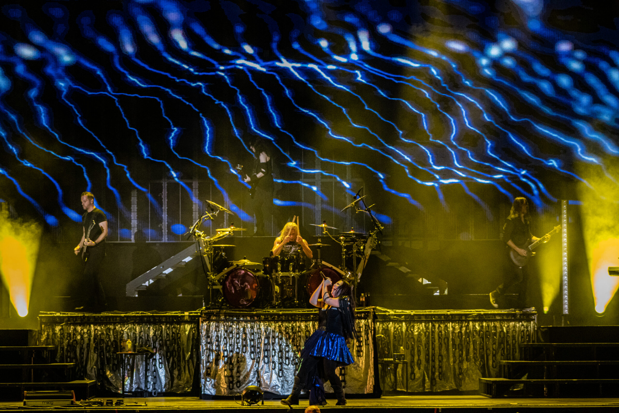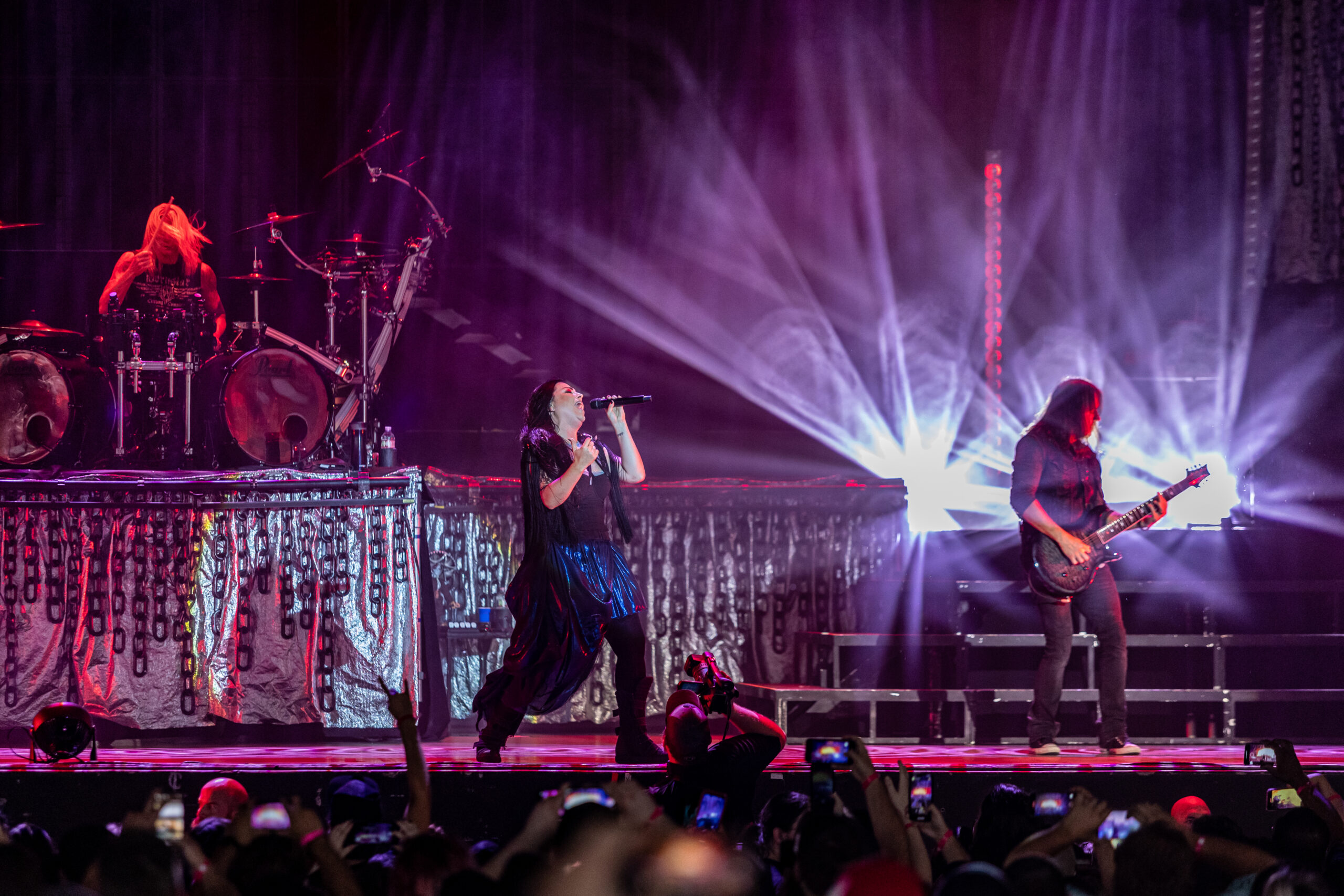 Next band to take the stage needs no introduction. Fronted by one of the most beautiful singing voices in rock in Amy Lee, is Evanescence. As the lights fade, Drummer Will Hunt walks out on stage and starts hitting a beat as a count down happens and Amy Lee appears up above his. A silhouette mainly as they start their set with “Broken Pieces Shine“. Followed by “Made of Stone” and “Take Cover“. Her voice hasn’t changed in the years of her doing this. Still as flawless as ever. Towards the end of their set the piano comes out and she does the classic “My Immortal” to a sea of phone flashlights lighting up the whole pavilion. Ending with “Blind Belief“, Evanescence still goes strong.
