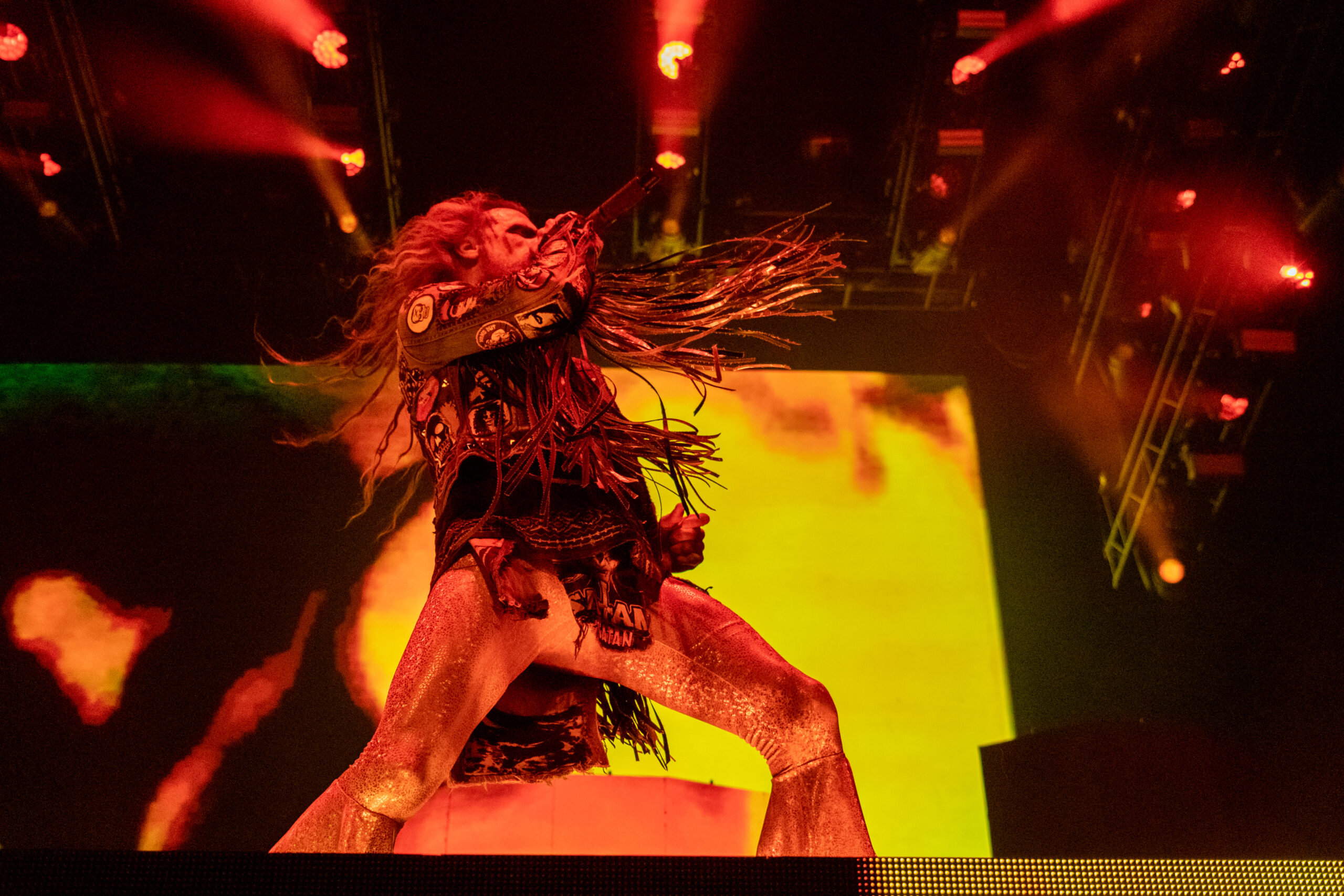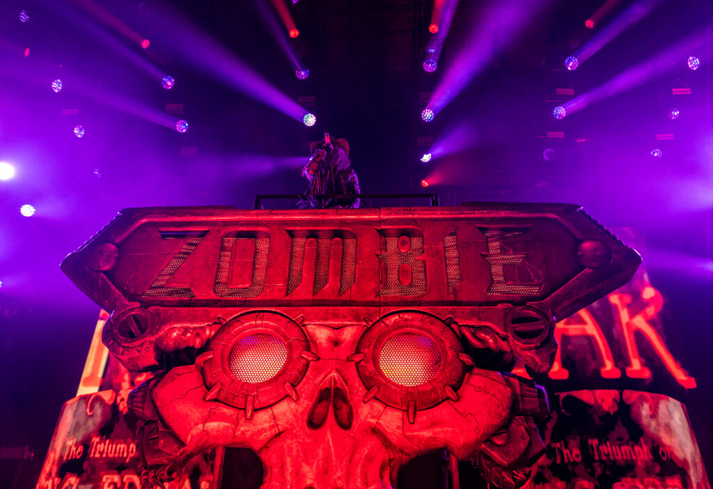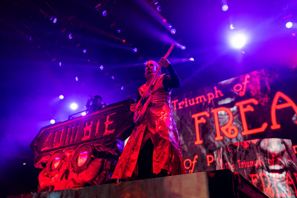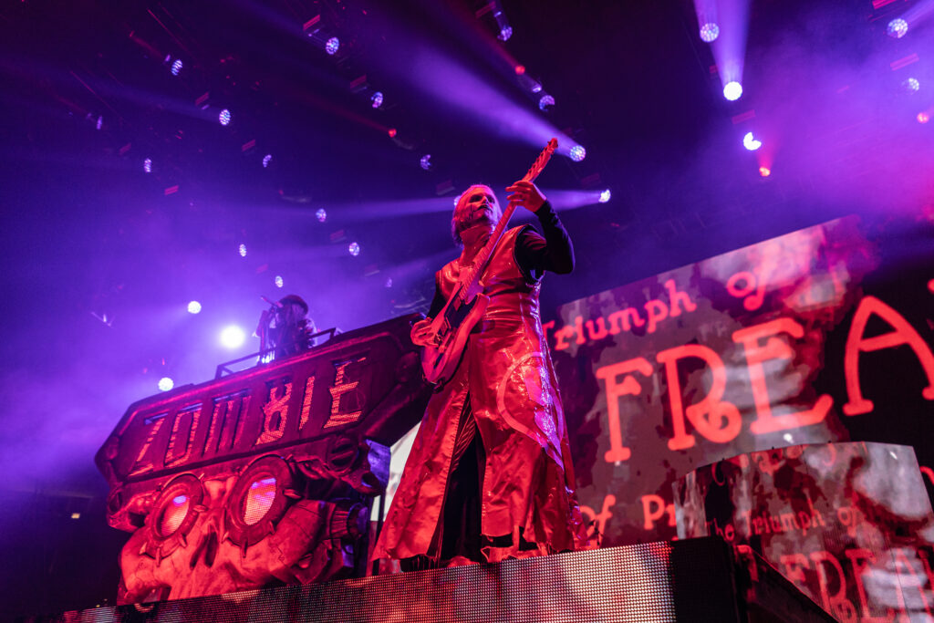 Next was the man that put this whole crazy freak show together… Rob Zombie! What can you say about this guy. He’s done just about everything. Whether you like it or not everyone keeps wanting more of whatever this man will put out there. Sadly, on this night instead of our usual 3 songs from the pit we were only allowed to do 2 songs so it was a rush to get what we could in 2 songs. Zombie definitely let’s his stage be the star of the show. Starting the night off on top of a huge ZOMBIE stand in the center of the stage with his latest hit “The Triumph of King Freak (A Crypt of Preservation and Superstition) Followed by Superbeast. Even though we only got 2 songs here I believe they gave us a lot to cover. It was a great show and then I was able to just enjoy the rest of my night. John 5 is one of the best guitarists out there and his solo towards the end of the night was bar none! I highly recommend a Zombie show anytime you can catch him.