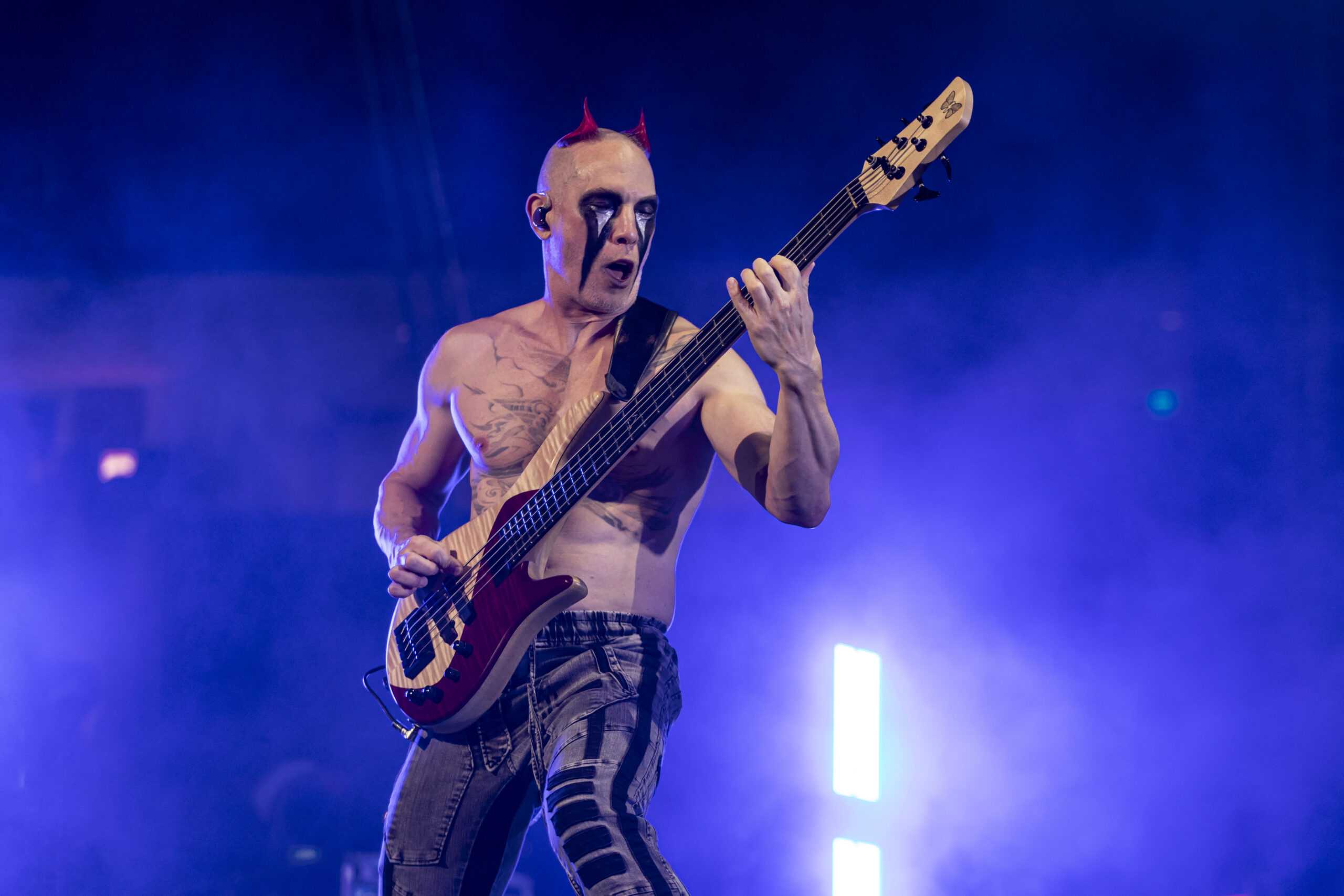 After a quick break, Static-X came to the stage. It is different without Wayne Static, but Xer0 does him justice. I especially love that he doesn’t try to be the “new singer” but embodies who and what Wayne was in this band. Dawning a “Wayne Static” death mask and signature hair style. Playing the classic favorites like “Bled For Days“, “Push It“, “Cold” and “Wisconsin Death Trip“, they kept the memory alive and kept the band going on.